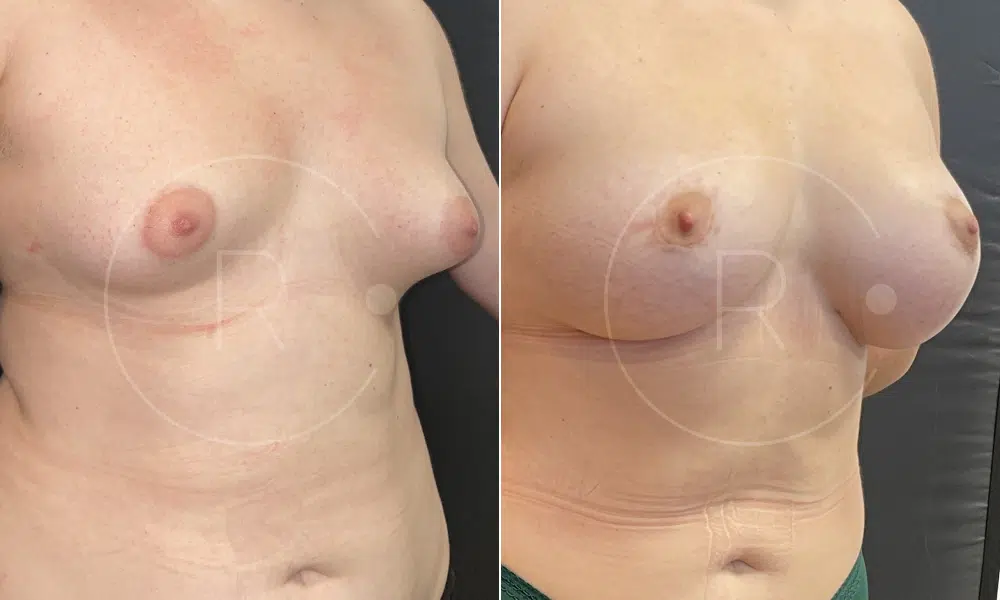 - Implant de 255ml à droite et 275ml à gauche