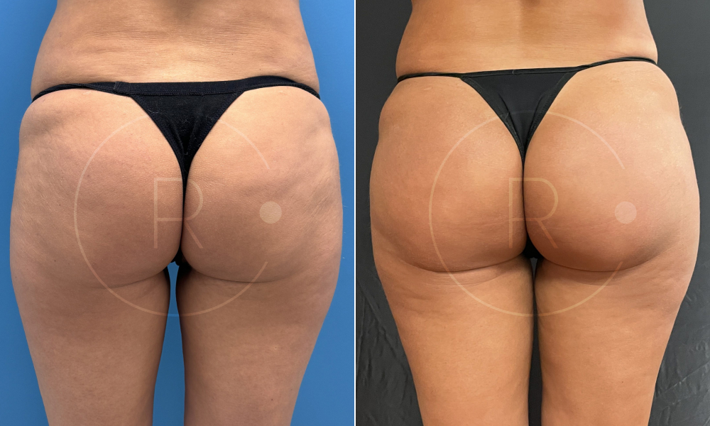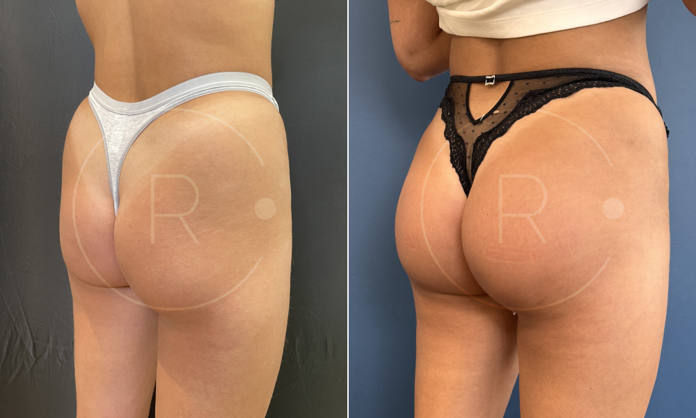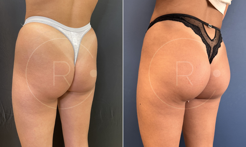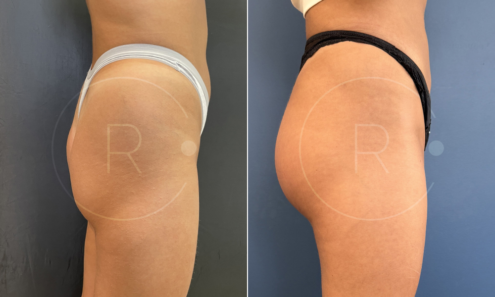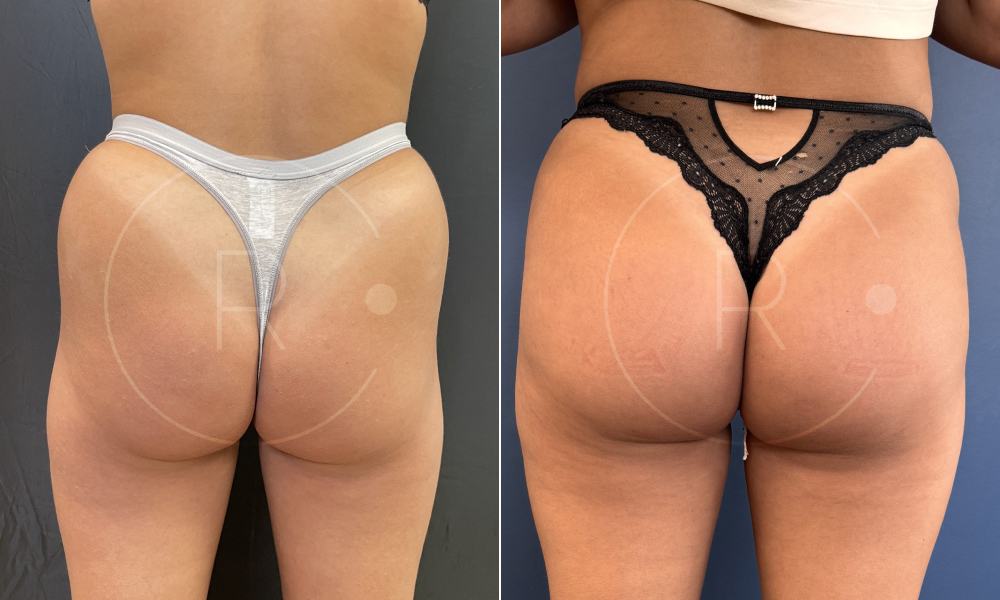 Résultats avant après à 2 mois d’une pose de prothèses de fesses