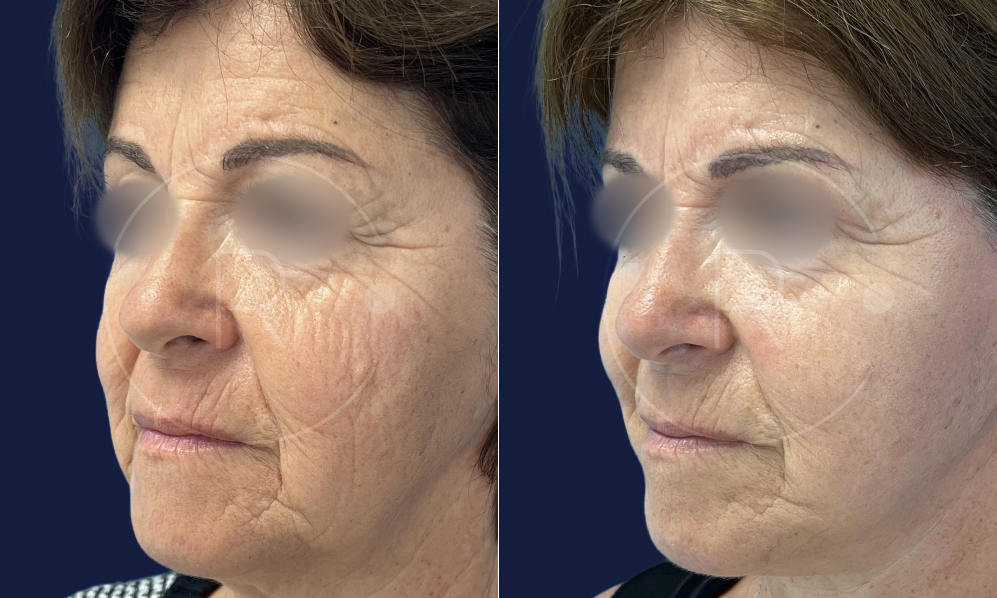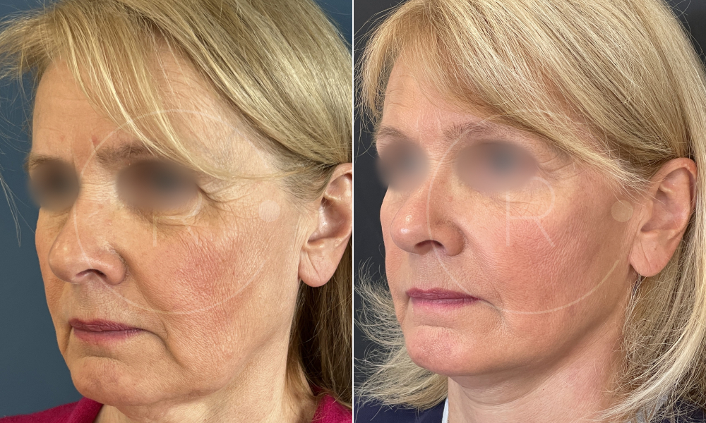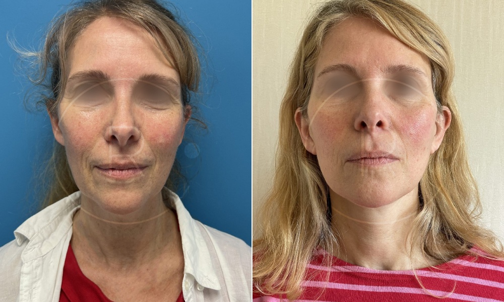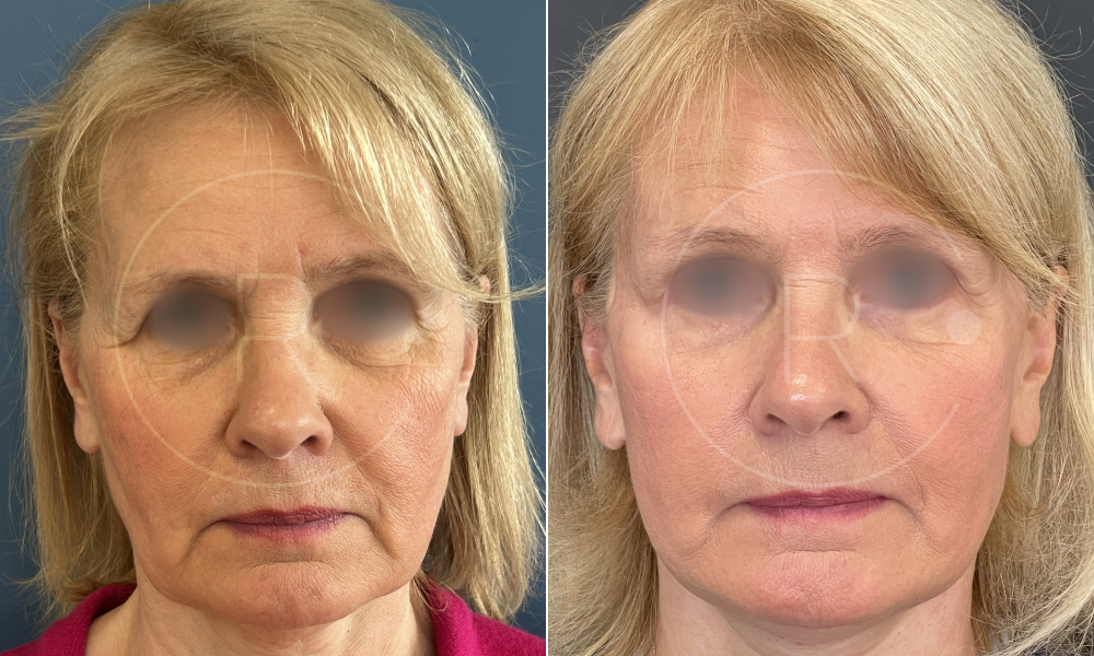 Lifting cervico-faciale + blépharoplastie inférieure post op 1 mois